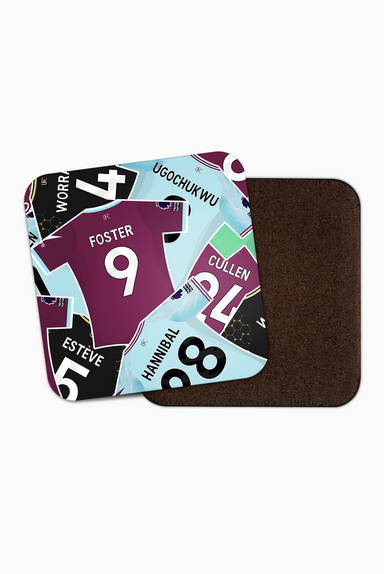 A product to showcase the 2025-26 Fulham squad. The perfect item to show off your club colours and favourite players. Hardboard Coaster Glossy f...