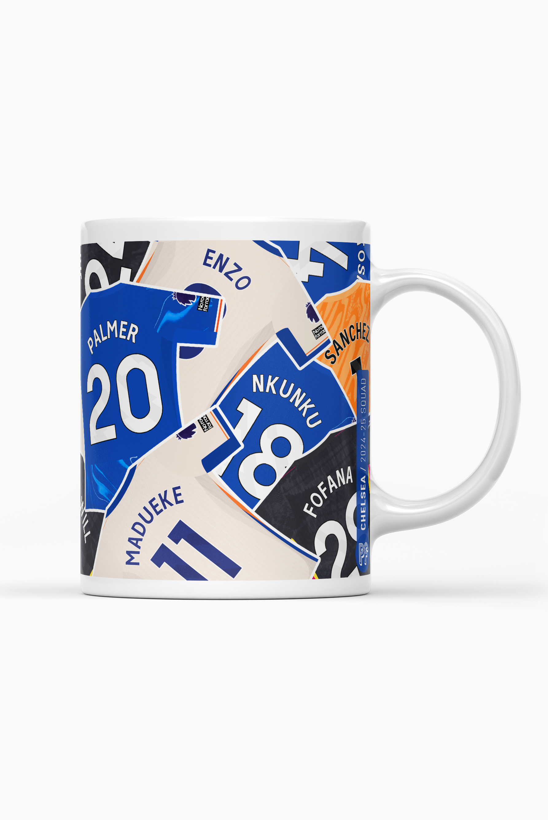 A product to showcase the 2024-25 Chelsea squad. 18 players are shown on one mug, making it the perfect item to show off your club colours and favourite players.